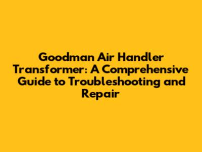 Troubleshooting Your Goodman Air Handler Transformer
