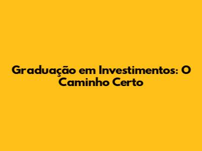 Graduação Em Investimentos: O Caminho Certo