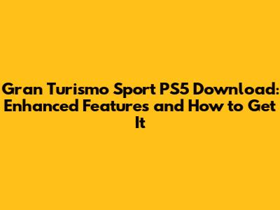 Gran Turismo Sport: PS5 Download & Enhanced Features