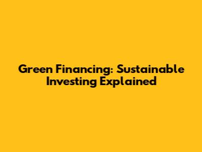 Green Financing: Sustainable Investing Explained