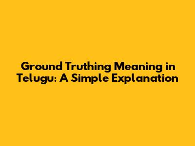 Ground Truthing Meaning In Telugu: A Simple Explanation
