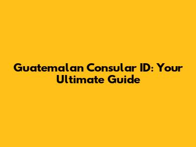 Guatemalan Consular ID: Your Ultimate Guide