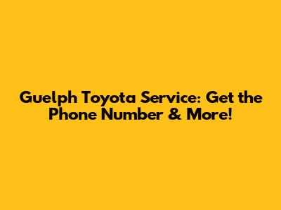 Guelph Toyota Service: Get The Phone Number & More!