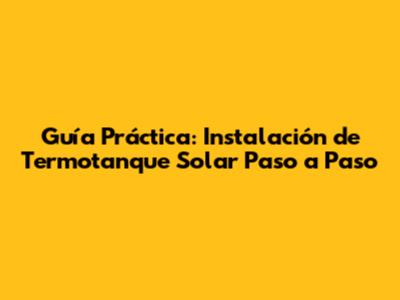 Guía Paso a Paso: Instalación del Termotanque Solar