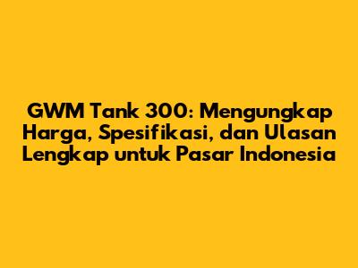 Harga GWM Tank 300 di Indonesia: Apa yang Perlu Anda Ketahui?