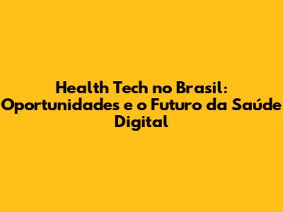 Health Tech No Brasil: Oportunidades E O Futuro Da Saúde Digital