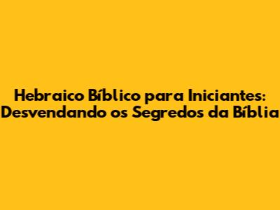 Gramática Hebraica para Iniciantes: Uma Visão Geral