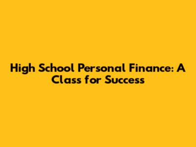 High School Personal Finance: A Class For Success