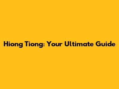 Hiong Tiong: Your Ultimate Guide