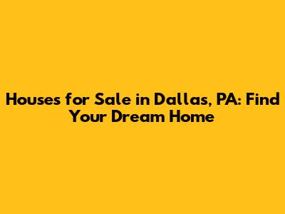 Hey guys! Are you on the hunt for houses for sale in Dallas, PA? You've landed in the right spot! Dallas, Pennsylvania, is a fantastic place to call home, offering a blend of small-town charm and convenient access to urban amenities. Whether you're a first-time homebuyer, looking to upgrade, or simply curious about the real estate market in Dallas, this guide will provide you with all the essential information you need. Let's dive in and explore the beautiful homes and opportunities this area has to offer.