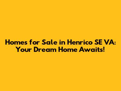 Homes For Sale In Henrico SE VA: Your Dream Home Awaits!