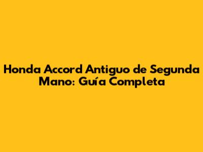 Honda Accord Antiguo De Segunda Mano: Guía Completa