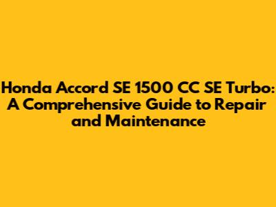 Essential Maintenance for Your Honda Accord SE 1500 CC SE Turbo