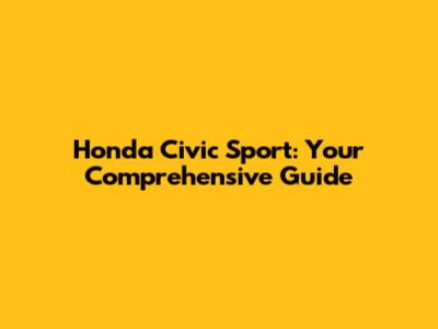 Honda Civic Sport: Your Comprehensive Guide