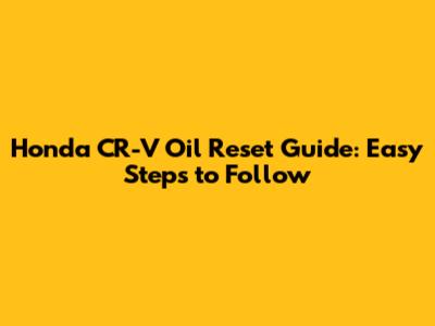 Honda CR-V Oil Reset Guide: Easy Steps To Follow