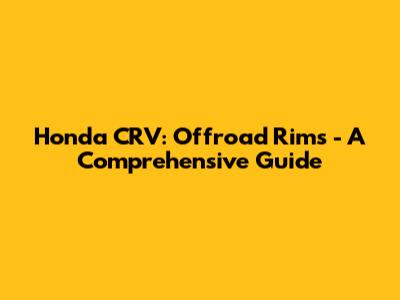 Honda CRV: Offroad Rims - A Comprehensive Guide