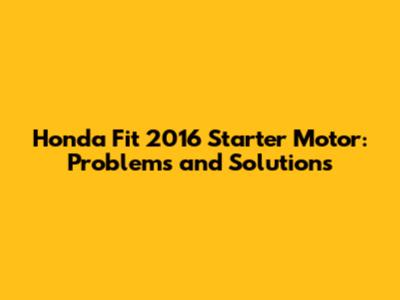 Honda Fit 2016 Starter Motor: Problems And Solutions