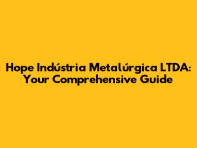 Hope Indústria Metalúrgica: Your Guide