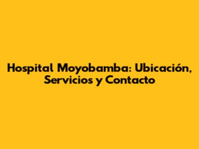 Hospital Moyobamba: Ubicación, Servicios Y Contacto