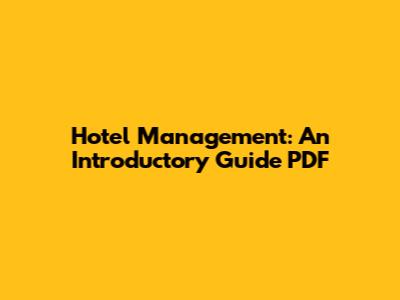 Hotel Management: An Introductory Guide PDF