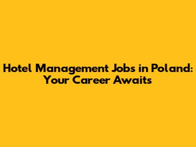 Hotel Management Jobs In Poland: Your Career Awaits