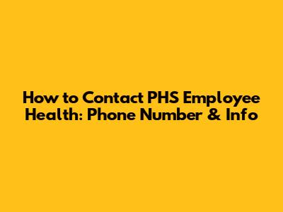 How To Contact PHS Employee Health: Phone Number & Info
