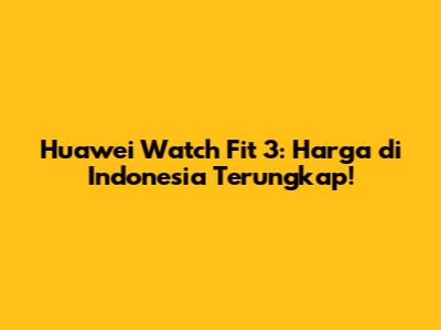 Huawei Watch Fit 3: Harga Di Indonesia Terungkap!
