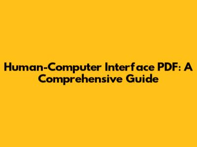 Human-Computer Interface PDF: A Comprehensive Guide