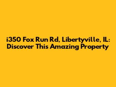 Hey guys! Ever wondered about that awesome property at i350 Fox Run Rd, Libertyville, IL? Well, you’ve come to the right place! Let's dive into everything you need to know about this address, from its location perks to the neighborhood vibes and everything in between. Whether you're a potential buyer, a curious neighbor, or just someone who loves real estate, we’ve got you covered. So, buckle up and let’s explore this fantastic piece of Libertyville!