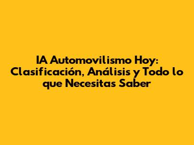 IA Automovilismo: Clasificación Y Últimas Novedades