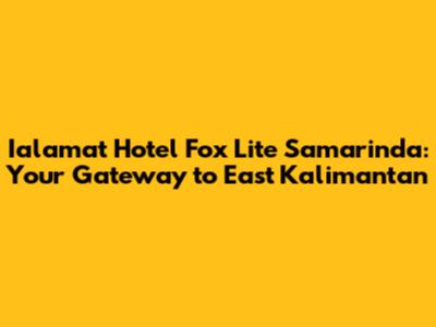 Hey guys! Planning a trip to Samarinda, East Kalimantan? Awesome! You're in for a treat. Samarinda is a city with a vibrant culture, delicious food, and stunning natural beauty. And if you're looking for a comfortable and convenient place to stay, Ialamat Hotel Fox Lite Samarinda might just be the perfect spot for you. In this article, we'll dive deep into everything you need to know about this hotel, from its location and amenities to room options and guest reviews. So, grab a coffee (or teh tarik, if you're feeling authentic!), and let's get started!