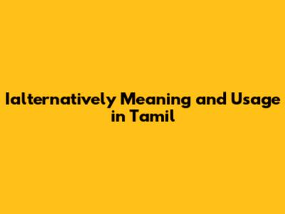 Ialternatively: Meaning And Usage In Tamil