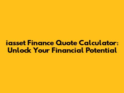 Hey everyone! Are you ready to dive into the world of iasset finance and discover how to snag the best deals? This article is your ultimate guide to understanding the iasset finance quote calculator. We'll break down everything you need to know, from how the calculator works to how it can help you make smart financial decisions. Let's get started!