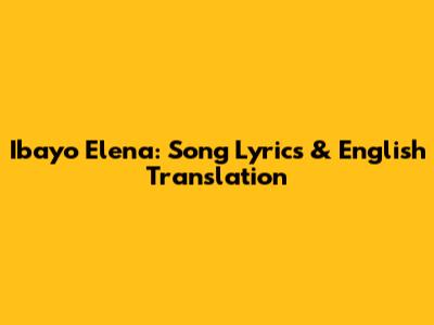 Ibayo Elena: Song Lyrics & English Translation