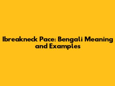 Ibreakneck Pace: Bengali Meaning And Examples