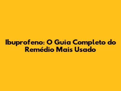Ibuprofeno: O Guia Completo Do Remédio Mais Usado