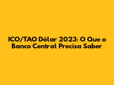 ICO/TAO Dólar 2023: O Que O Banco Central Precisa Saber