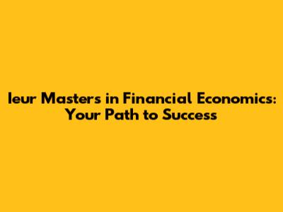 Ieur Master's In Financial Economics: Your Path To Success