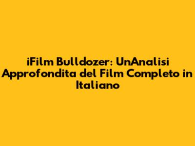 La domanda che tutti si pongono è: dove posso vedere iFilm Bulldozer completo in italiano? Fortunatamente, ci sono diverse opzioni per godersi questo film. È possibile trovare iFilm Bulldozer su piattaforme di streaming legali come [nome piattaforma 1] e [nome piattaforma 2]. Inoltre, il film potrebbe essere disponibile per l'acquisto o il noleggio su [nome piattaforma 3]. Assicuratevi sempre di utilizzare fonti legali per supportare il lavoro dei creatori del film. In questo modo, potrete godervi iFilm Bulldozer in alta qualità, con audio e sottotitoli in italiano, e contribuire a sostenere l'industria cinematografica. Ricordate di verificare la disponibilità del film nella vostra regione e di scegliere l'opzione che preferite per godervi questa avventura cinematografica.