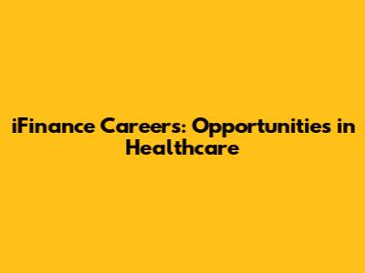 IFinance Careers: Opportunities In Healthcare