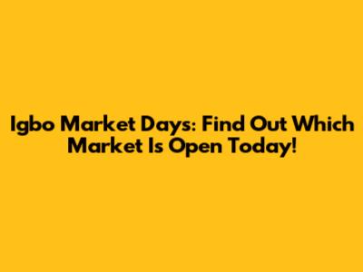 Igbo Market Days: Find Out Which Market Is Open Today!