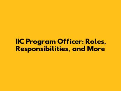 IIC Program Officer: Roles, Responsibilities, And More