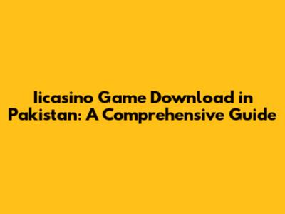 Iicasino Game Download In Pakistan: A Comprehensive Guide