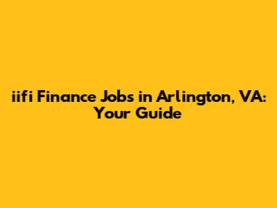 Iifi Finance Jobs In Arlington, VA: Your Guide
