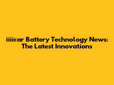 Iiiicar Battery Tech: Latest News & Innovations