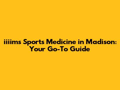 Iiiims Sports Medicine: Your Madison, WI Guide