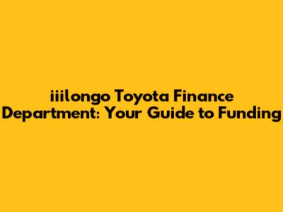 Iiilongo Toyota Finance Department: Your Guide To Funding
