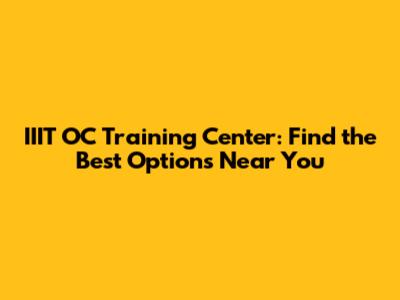 How to Find an IIIT OC Training Center Near You
