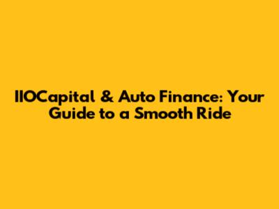 IIOCapital & Auto Finance: Your Guide To A Smooth Ride
