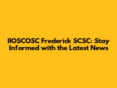 IIOSCOSC Frederick SCSC: Latest News & Updates